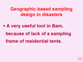 a sampling frame of residential tents, a cluster geographic-based sampling