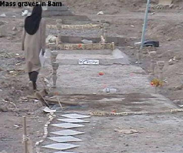 ![]() You see the pictures of mass graves in Bam. Actually it is a myth that corpses left on the ground can cause outbreaks. Although, health officials know that well, but they were obliged to do that because of local limitations including: the sensitivity of authorities to odor of corpses, and religious beliefs of people that corpse should not be left on the ground. The consequences of this fact are future legal problems and psychological problems for mourners. |