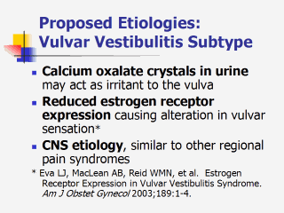 | (2) Eva LJ, MacLean AB, Reid WMN, et al. Estrogen Receptor Expression in Vulvar Vestibulitis Syndrome. Am J Obstet Gynecol 2003;189:1-4. |