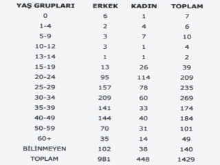 | Tablo 2. Türkiyede HIV/AIDS vakalarının yaş gruplarına göre dağılımı (31 Haziran 2002 T.C. Sağlık Bakanlığı) (5) |