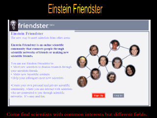 Perhaps an Einstein friendster will allow us to rapidly find individuals world wide of common interest but different areas.