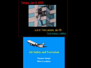 | Shortly after Sept. 11, a 16 year old flew into a bank in Tampa. We decided that we could reduce fear by including a lecture on airline safety. |