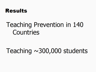 | All public health and medical instructors are encouraged to read/use this lecture for teaching. It was amazing in that we reached 75% of the world, and over 300,000 students. Most certainly this single lecture taught more students than any lecture ever created. |