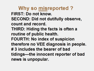 and the vet might lose his client. However, the PanAmerican Health Organization (PAHO) gave an archive on equine (pp 209-211) & human disease (pp 215-217) in Venezuelan Encephalitis, Sci Pub # 243 in 1972. |