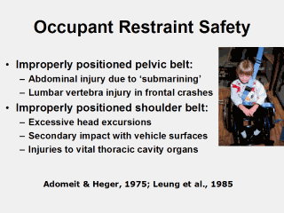 | Picture that shows poor belt fit (belt touching the neck of the child) when used for a 6-year old child seated in a wheelchair. |