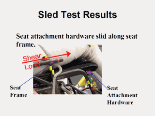 | Also in a static test, only a downward force was applied to each wheelchair seat. However, the failure mode observed in a sled test of one wheelchair seat was result of shear loads applied to the seat. |