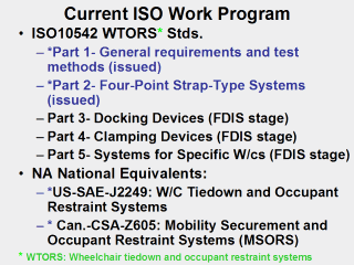 ISO CD 7176-19 Wheelchairs is the standard that is concerned about the transport safety of the wheelchair itself.