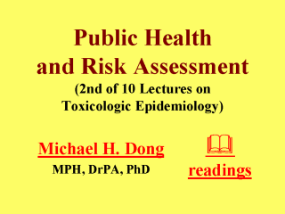 the 10 lectures are: (1) Toxicology and Epidemiology; (2) Public Health and Risk Assessment; (3) Toxicology and Risk Assessment; (4) Epidemiology and Risk Assessment; (5) Toxicologic Side of Epidemiology; (6) Epidemiologic Side of Toxicology; (7) Human Exposure Assessment I; (8) Human Exposure Assessment II; (9) Characterization of Health Risk; and (10) Toxicologic Epidemiology. |