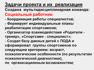 заключены договора о реализации реабилитационной программы; - разработан бланк индивидуальной реабилитационной программы; - контроль за реализацией индивидуальной реабилитационной программы |
