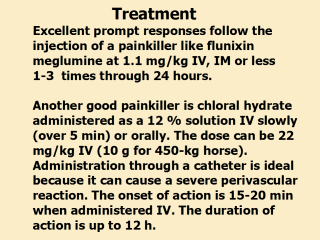 How? Did you reflux any fluid with the stomach tube? If the horse developed twisted gut—tortion of the small intestine—it will go to horse heaven. An operation could save it, but conditions in stables are usually such that this horse will be lost via accidental infection--contamination. EVERYONE MUST AGREE that colic is not really being treated! An undefined emergency is being resolved. |