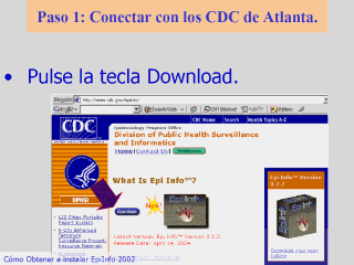 página principal de EpiInfo. Si lo desea guárdela en Favoritos. Pulse una vez en la tecla download para descargar el programa en su ordenador. |