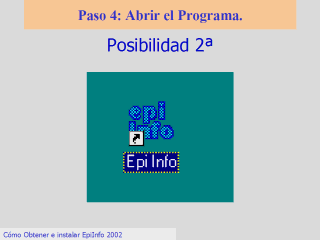 Vaya a su escritorio y busque un icono de acceso directo a EpiInfo. Pulse sobre él y tendrá el programa a su disposición.