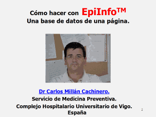 El Dr Millán, Médico Especialista en Medicina Preventiva y Salud Pública, Epidemiólogo Hospitalario, es docente de los Médicos Especialistas durante la Residencia y los forma en el uso del programa EpiInfo desde el año 1993 hasta el presente 2004.