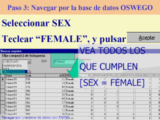 Al indicarle en SEX, la palabra FEMALE , y pulsar ACEPTAR, se muestran los registros correspondientes a las mujeres.