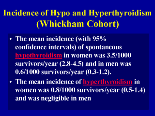 Vanderpump MPJ, Tunbridge WMG, French JM, Appleton D, Bates D, Clark F, et al. The incidence of thyroid disorders in the community: a twenty-year follow-up of the Whickham survey. Clin Endocrinol 1995;43:55-68.