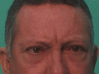 | This patient aged 65, with diabetes and thyrotoxicosis subtle cardiac abnormalities , debuted with a severe OT. The exophthalmos lack was due to the compression on the optic nerve by enlarged extraocular muscles at the orbit vertex with a resistant orbitarium septum avoiding proptosis. Orbital decompression by nasal endoscopy was carried out with good results. |