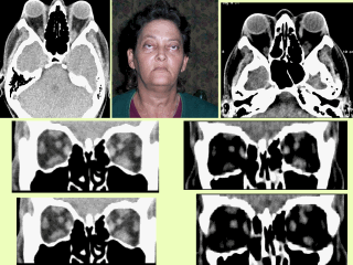 images shows patient after orbital decompression surgery carried out by