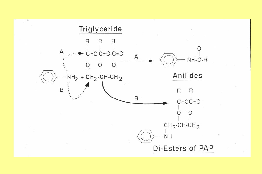 Vazquez Roncero A, Maestro Duran R, Ruiz Gutierrez V. New aniline derivatives in Toxic Oil Syndrome . Toxicity in mice of 3-phenylamino-1,3-propanediol and its fatty acid mono- and diesters. Grasas aceites 1984;35(5):330-1. Schurz HH, Hill RH, Posada de la Paz M, et al. Products of aniline and triglycerides in oil samples associated with the toxic oil syndrome. Chem Res Toxicol 1996;9(6):1001-6. Schurz HH, Hill RH, Philen RM, et al. Analytical measurements of products of aniline and triglycerides in oil samples associated with the toxic oil syndrome. Arch Toxicol Suppl 1997;19:53-64. |