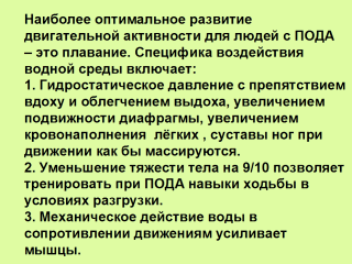 обезбаливающий эффект. 5. Химическое действие воды после хлорирования в бассейне может иметь отрицательные последствия при бронхиальной астме. 6. Психотерапевтическое действие при отвлечении от болевых зон на теле. Хорошо действует купание при неврозах, астениях и повреждениях нервной системы. |