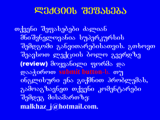 aseve mogvawodeT im saitebis misamarTebi, romelTac am mocemul leqciasTan