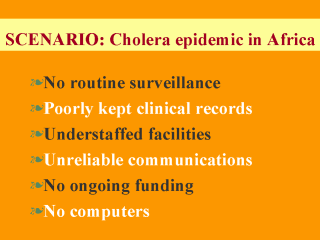 system for a cholera epidemic in a rural area where there is no routine surveillance, bad