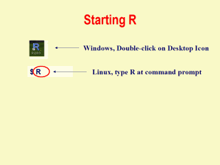 Linux systems, R can be started by typing "R" at the prompt. You can also