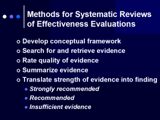 does the Task Force develop its findings? First, the systematic review development team determines the causal chains and outcomes related to the topic under review. The team then determines what part of this framework they are going to focus their review on (for the tobacco review this was prevention and control, as opposed to just prevention of initiation). Then classes of interventions are refined (for tobacco, those designed to prevent initiation, increase cessation, and prevent exposure to environmental tobacco smoke). Second, search terms are developed and a comprehensive literature review is conducted to find all the possible studies on the effectiveness of the selected interventions (for tobacco this turned up just over 16,000 citations). The third step is rating the quality of the evidence and the studies looking at the quality of study design, study execution, and reported effect measures (for tobacco this meant comprehensively abstracting over 1,000 studies) Next is summarizing the evidence of effectiveness: looking across the evidence, what can be concluded? Interventions with the strongest evidence of effectiveness are strongly recommended, those with sufficient evidence are recommended, and those for which available studies do not provide sufficient evidence to assess effectiveness are categorized as having insufficient evidence (which doesn’t mean the intervention does not work, it just means that additional studies are needed to asses its effectiveness). While negative findings often more difficult to find, the Task Force will issue a finding discouraging use of a intervention where there is sufficient or strong evidence of ineffectiveness or harm. |