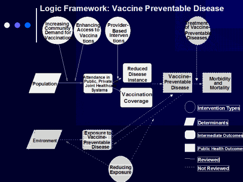 | This slide shows the logic model that synthesizes the main intervention categories and the steps leading to outcomes. The intervention categories include those that aim at INCREASING DEMAND, ENHANCING ACCESS, and PROVIDER-BASED interventions. |