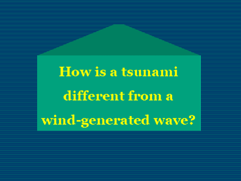 time between these peaks tsunamis are usually between 5 minutes and an hour. Wind-generated waves break as they shoal and lose energy offshore, while tsunamis act more like a flooding wave. A twenty foot tsunami is a twenty foot rise in sea level. Tsunami waves are distinguished from ordinary ocean waves by their great length between peaks, often exceeding 100 miles in the deep ocean. " Citation source: http://wcatwc.arh.noaa.gov/characteristics.htm |