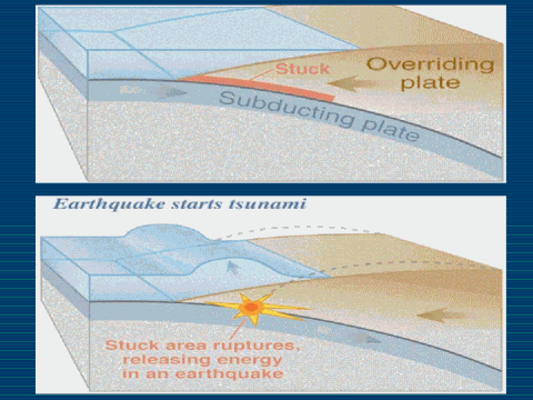 | Introduction: How an earthquake happens? In geologic terms, Plate is one of the very large pieces of rock that form the earth’s surface and move slowly. Subduction zone is the place where two lithosphere plates come together, one riding over the other. Most volcanoes on land occur parallel to and inland from the boundary between the two plates. One of the many tectonic plates that make up Earth’s outer shell descends, or "subducts," under an adjacent plate. This kind of boundary between plates is called a "subduction zone." When the plates move suddenly in an area where they are usually stuck, an earthquake happens. Citation source: http://pubs.usgs.gov/circ/c1187/ Notice: You can find the definitions of geologic/earthquake terms at the following addresses. They may help you, if you are not a geologist! Earthquake glossary http://earthquake.usgs.gov/4kids/eqterms.html#oceanic http://www.geophys.washington.edu/SEIS/PNSN/INFO_ Geologic Terms http://www.geotech.org/survey/geotech/dictiona.html#sectS |