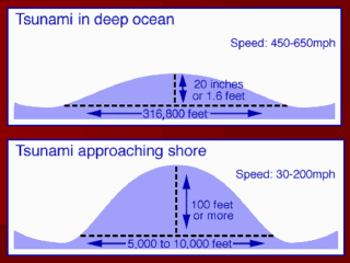 المياه السطحية تسونامي كبير ممكن أن يصل إلى ارتفاع يزيد على مائة قدم (30