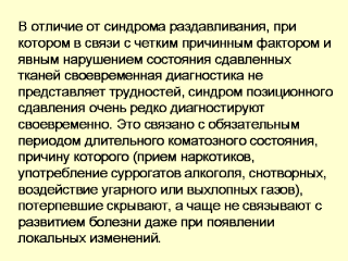 Сигналом тревоги в условиях непрофильных стационаров, куда госпитализируют таких больных, как правило, служит необъяснимая или случайно выявляемая олигоанурия. Лишь развитие явных клинических признаков ОПН дает повод для перевода уже тяжелобольных в отделения острых отравлений, реанимационные, нефрологические отделения или почечные центры. |