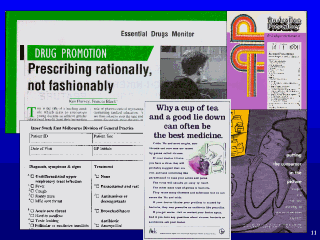 This shows a few of our national change strategies: educational campaigns designed to teach critical appraisal of pharmaceutical promotion; drug audit sheets for community doctors; educating the medical educators and encouraging curriculum development and consumer conferences and education including posters for outpatients and doctors waiting room's designed to reduce patient expectation of receiving antibiotics for viral upper respiratory infections.