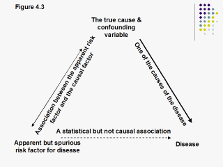 The spurious confounded association results from one of the causes of disease (confounding factor) being associated with the apparent risk factor