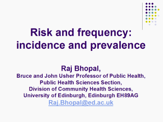 Slides supporting chapter 7 of the book: Bhopal R S. Concepts of Epidemiology. Oxford, Oxford University Press, 2002, pp317 http://www.oup.co.uk/isbn/0-19-263155-1