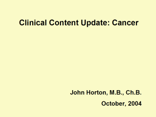 содержания курса клинической подготовки: онкологические заболевания Реферат: Презентация международной конференции Реформирование учебных программ: Образование, направленное на достижение компетентности. Постоянная оценка знаний как основа обучения на протяжении всей жизни, 18-20 октября 2004 г., Астана, Казахстан. Автор: Хортон Джон Источник документа: Американский