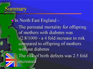 England is high risk. There was a 4 fold increase in risk in perinatal mortality and 2.5 fold increase in birth defects. |