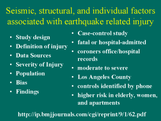 medical conditions and motor vehicle accidents resulting in injury. It uses