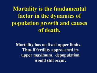 | It is mortality, not fertility that determines population growth. SES, mortality, and mobitity are tied together in a system of disease and population growth. To understand the system, it is essential to understand the total interrelationships. |