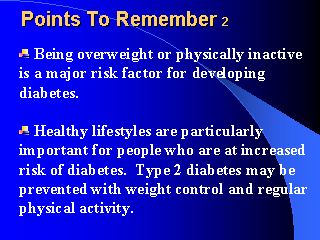 Patients should be encouraged to maintain a normal lifestyle, and target blood glucose levels should be individualized according to the type of therapy, risk of hypoglycemia, co-morbid conditions, and projected longevity of the patient. Diet and exercise, together with education and home blood glucose monitoring, form the cornerstone of therapy for all patients. Hence, a multidisciplinary team comprising of physician, nurse practitioner, dentist and public health practitioner should ideally manage Type 2 DM patients. Aerobic exercise should be encouraged, but patients starting an exercise program should be screened for coronary artery disease. If diet and exercise fail to achieve adequate glucose control, oral hypoglycemic agents should be considered. |