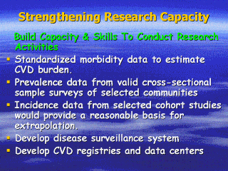 | Obtaining a fuller estimate of the burden of disease also requires standardized morbidity data. Although gathering such data on a national basis would be impractical, obtaining prevalence data from cross-sectional sample surveys of selected communities and incidence data from selected cohort studies would provide a reasonable basis for extrapolation. Health services of large organized sector industries may offer opportunities for convenient and cost-effective prospective studies and registries. |
