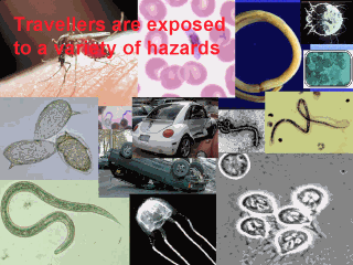 | As a consequence of travelers ability to cross borders and traveling to all points of the globe, they are exposed to a variety of hazards. |