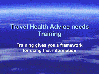 | Training in travel medicine provides a framework and an approach to using information from the risk assessment. |