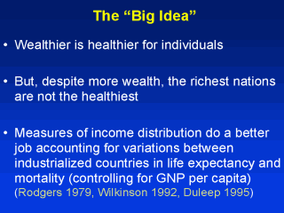 But Wilkinson then showed that mortality in the industrialized countries was associated with how income is distributed within those countries. Controlling for average national incomes did not affect this association.