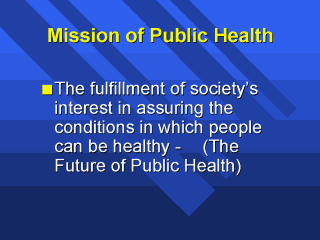 attention to the forest as well as the individual trees. The Mission of Public Health is