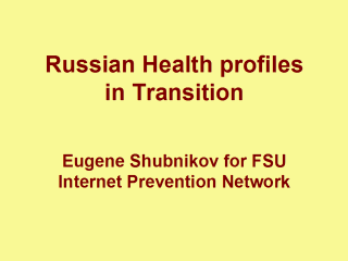 | This presentation is based on Tragakes E. and Lessof S. In: Tragakes E., ed. Health care systems in transition: Russian Federation. Copenhagen, European Observatory on Health Systems and Policies, 2003: 5(3) publication available from www.who.dk web site, references at this book and presentation by Professor S. Plavinsky “Prosperity, Health, Demography, Government and World - Perspectives for Russia” at www.pitt.edu/~super1/lecture/lec17261/index.htm web address. |
