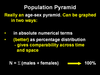 | Note that the percentages for each age and sex-specific population segment should total 100. In other words, the cumulations should not be performed separately for each sex lest a misleading picture of the population emerge. |