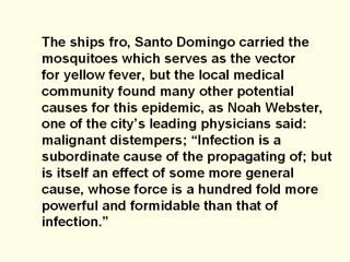 Philadelphia physicians were sharply divided over the cause of this terrifying disease. One group of doctors,  headed by Benjamin Rush, laid the blame for the epidemic on local causes. Most notable among these causes were the harsh fumes arising from stagnant waters in the marshes surrounding Philadelphia. Other sources of bad air came from decaying vegetable matter and poor public sanitation. Opposing Rush's group was the College of Physicians, who placed the blame for this epidemic on foreign origins, particularly the possibility of infection brought in by ships. A heated debate between these rival factions ensued, with much press coverage. This debate only served to heighten public fears and lessen their confidence in the medical community.