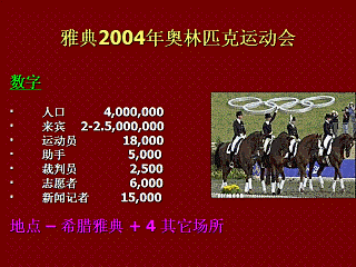 奥林匹克运动会是与一个国家的发展同步的,使希腊向大家显示财富不仅代表它的过去,还有创造和现代化。