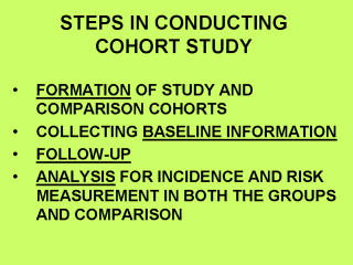 | Study cohort or the exposure cohort is a group of persons exposed to the cause and in whom we are expecting the development of the disease in question e.g. smokers cohort. |